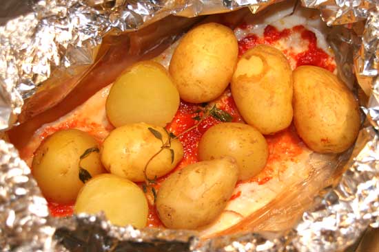 170C/ Gas 5. Boil the potatoes in lightly salted water for