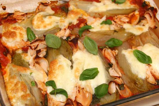 180C/ Gas 6. Cut the bottom off the chicory and halve the